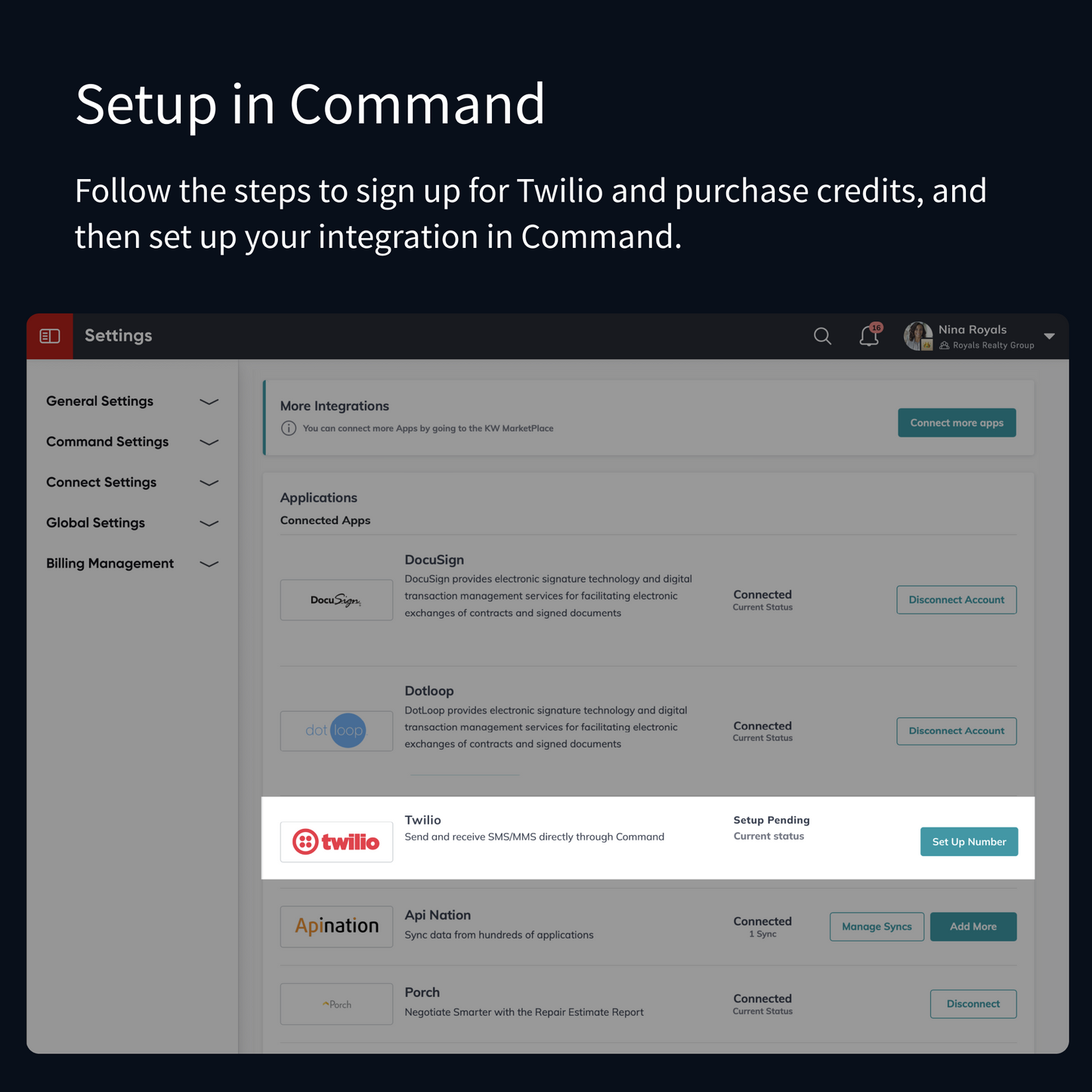 Twilio and KW have joined forces to make sending and receiving SMS/MMS messages seamless in Command.